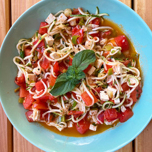 Die Zucchinispaghetti unter die Sauce heben und kurz erwärmen, Minze grob hacken und darüber streuen und anrichten. Wenn das mal nicht nach Sommer schmeckt ;) Guten Appetit ihr Lieben!